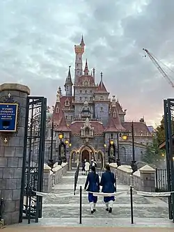 On October 14, 2016, The Oriental Land Company announced they would close Grand Circuit Raceway and open "Beauty and the Beast" theme area with a budget of 32 billion yen.[2] The construction started on April 5, 2017.[3] It was scheduled to open Spring 2020,[4] however it got delayed due to COVID-19 pandemic in Japan and opened on September 28, 2020.[5]