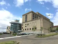 The Energy Innovation Center is a multi-disciplinary institution in Pittsburgh, Pennsylvania, United States, that integrates workforce development programs, green technology research laboratories, a business incubator and collaborative university-industry projects. It is housed in the former Clifford B. Connelley Trade School, which was renovated both to accommodate diverse uses and to serve as a case study for green adaptive reuse. In 2014 the renovated building received the Engineers' Society of Western Pennsylvania Project of the Year Award for Sustainability.[3] It is listed on the National Register of Historic Places[1] and on the List of Pittsburgh History and Landmarks Foundation Historic Landmarks,[2] making it perhaps the only LEED Platinum structure to qualify for Historic Tax Credits.[4]