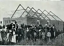 After leaving school, Lekganyane began working around the Transvaal—"he had to go to work and make a living, like many of his era, on the farms and in public works schemes."[4] In his early adulthood Lekganyane joined a new Presbyterian church in the Mamabolo reserve—according to his earliest known statements he had been "a member of the Free Church of Scotland in training as (or actually being) an evangelist under the missionary in that Church."[5]