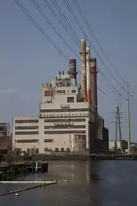 English Station is an abandoned thermal power plant in New Haven, Connecticut. It occupies eight acres of land on Ball Island in the Mill River, Connecticut, which separates the neighborhoods of Wooster Square and Fair Haven.[1] It was constructed from 1924 to 1929. The plant operated as a coal- and oil-fired power plant for United Illuminating until it stopped electricity-generating operations in 1991.