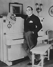Caruso's success in the Metropolitan Opera drew the attention of Black Hand extortionists.[17] They threatened to injure his throat with lye or harm him and his family if he did not pay them money.[18] He initially paid their extortion fee of $2,000 expecting the matter to be settled, but his willingness to pay made them more brazen. They subsequently demanded an even larger sum of $15,000."[19] He was aided by New York City police detective Joseph Petrosino[20] who, impersonating Caruso, captured the extortionists.[21] Two Italian men, Antonio Misiano and Antonio Cincotto, would be later specifically accused of the crime.[22][23]