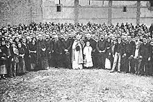 De Cerralbo returned to his conciliatory policy towards other conservative parties;[104] he also resumed tours across Spain, and re-organized the party by creating 10 commissions.[105] A novelty in party tactics was an attempt to emphasize its public presence by organizing romerías, aplecs and pilgrimages, also abroad.[106] It was during his second tenure that Requete was born, shaped by Llorens as the paramilitary organization.[107] De Cerralbo remained perfectly loyal to the claimant, though Don Jaime was increasingly uneasy about the growing position of de Mella, which led to clashes related to management of Correo Español.[108]