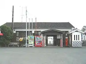 The station has a side platform and an island platform serving three tracks, connected to an old wooden station building by a level crossing. The station is staffed. The station building and platform, which were built in 1935 were designated a Registered Tangible Cultural Property in 2011.[1]