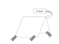 This technique was developed in Knoxville, Tennessee in 1989, and in the pilot study was found to be more effective than using an aerial net. The traps are constructed using manufactured sticky traps measuring approximately 9 inches (230 mm) by 10 inches (250 mm) in the shape of an inverted “V”, or pup tent, with the sticky material on the outside (see fig 1). These traps generally have four clothespins clipped to the bottom corners to provide ground clearance. The traps are placed at varying distances from the body, between 1 foot (0.30 m) and 12 feet (3.7 m), with one side facing the body. The sides of the traps should be set at a 60 degree angle. When collection is done the sticky trap should be labeled with both the time it was put out and the time it was picked up. In the lab insect can be individually removed and rinsed with paint thinner or xylene before preservation.[2]