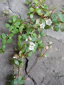 Epacris crassifolia is a plant in the heath family Ericaceae which is endemic to central eastern New South Wales, Australia. There are two varieties of E. crassifolia: var. crassifolia and var. macroflora. A small spreading plant found in sandstone ledges and crevices. Leaves are dark green in colour; stiff, thick and shiny with a rounded tip. 5 to 13 mm long, 1.7 to 5 mm wide. This is one of the many plants first published by Robert Brown with the type known as "(J.) v.v." It appears in his Prodromus Florae Novae Hollandiae et Insulae Van Diemen in 1810.[1][2]