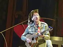 Known for his elaborate wordplay and musical numbers, Idle performed many of Python's songs, including "Always Look on the Bright Side of Life" (from Life of Brian), and the "Galaxy Song" (from The Meaning of Life).[2] After Monty Python's Flying Circus, he hosted Saturday Night Live in the US four times in the first five seasons and guest-starred on The Simpsons. Idle's initially successful solo career faltered in the 1990s with the failures of his 1993 film Splitting Heirs (which he wrote, produced, and starred in) and 1998's An Alan Smithee Film: Burn Hollywood Burn (in which he starred). He revived his career by returning to the source of his worldwide fame, adapting Monty Python material for other media. Following the success of the musical Spamalot (which won the Tony Award for Best Musical), he also wrote Not the Messiah, an oratorio derived from the Life of Brian.[3] He was featured in a one-hour symphony of British music when he performed to a global audience at the London 2012 Olympic Games closing ceremony.[4]