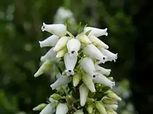 Erica caffra is a small tree, sometimes a shrub, that grows in riparian habitats and on forest edges and occurs from the Western Cape to the Drakensberg of KwaZulu-Natal and Lesotho.[2][3] The tree's flowers look like bells. The tree's national tree number is 572[4]