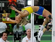Kinsey's results improved in 2015; she was NCAA Division II champion in the high jump both indoors and outdoors, and in the triple jump indoors, helping the Central Missouri Jennies win their first team titles.[5][9] She unexpectedly cleared 1.97 m at the European Team Championships in Cheboksary, improving her personal best from the MIAA outdoor championships by five centimetres; the jump moved her to third on the Swedish all-time list (behind Kajsa Bergqvist and Emma Green), and exceeded the qualifying standard for the 2015 World Championships in Beijing.[5][7] She debuted in the IAAF Diamond League in July 2015 in Lausanne, jumping 1.94 m and placing third.[10]