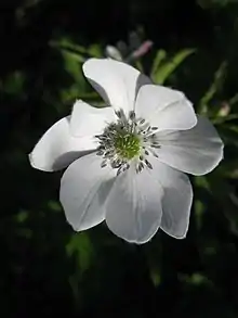 Eriocapitella rivularis, a species of flowering plant in the buttercup family Ranunculaceae, is native to Asia. The specific epithet rivularis means "waterside, of the rivers",[2] which evidently refers to one of its preferred habitats. It is commonly called the riverside windflower.[3] In Chinese, it is called cao yu mei,[4] which means "grass jade plum".[5]