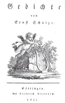 Schulze's early post-graduation lectures reflected his particular poetical interests, particularly Ancient Greek lyric poetry; his first two lectures were entitled „Ueber die Geschichte der lyrischen Poesie bey den Griechen“ and „Metrik […] und Prometheus des Aeschylus“.[3] Perhaps more importantly than his profession, however, became his love for Cäcilie Tychsen, daughter of the Orientalist and theologian Thomas Christian Tychsen. Cäcilie and her sister Adelheid were regarded by as Göttingen society as beautiful and musically talented and Schulze first met Cäcilie in 1811. A brief romance followed, which intensified on Schulze's part after Cäcilie fell incurably sick from pulmonary tuberculosis the following year at the age of eighteen. The couple's engagement came shortly before Cäcilie's death on 3 December 1812. Schulze wrote, "In Cäcilie, whilst truly chaste, I was made many times more beautiful and wonderful. It was what, perhaps, I could become if there were immortality, instead of now residing in gloom."[4]