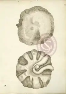 Benett had contact with many authors of works on fossils including the Sowerbys. Forty-one of her specimens were included in Sowerby's Mineral Conchology, a major fossil reference work, in which she had the second-highest number of contributions.[3] After viewing a part of her collection, and assuming she was male, Tsar Nicholas I granted her a Doctorate of Civil Law from the University of St. Petersberg at a time when women were not admitted into higher education institutions.[7] The Geological Society also would not admit her as a member due to her being a woman.[13] In response to her honorary doctorate, Benett noted that "scientific people, in general, have a very low opinion of the abilities of my sex."[7]