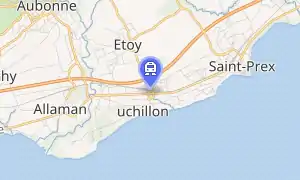 Etoy railway station (French: Gare d'Etoy) is a railway station in the municipality of Etoy, in the Swiss canton of Vaud. It is an intermediate stop on the standard gauge Lausanne–Geneva line of Swiss Federal Railways.[1]