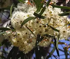 Eucalyptus cylindriflora, commonly known as the white mallee,[2] is a species of mallee that is endemic to the southwest of Western Australia. It has smooth bark, glossy green, linear adult leaves, flower buds in groups of seven, creamy white flowers and cylindrical to cup-shaped fruit.