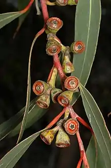 The fruit of this eucalypt was depicted on the original five dollar note, beside a drawing of Joseph Banks.[5]