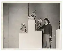 From 1936 to 1939, Gershoy worked for the WPA Federal Art Project. She collaborated with Max Spivak on murals for the children's recreation room of the Queens Borough Public Library in Astoria, New York. She developed a mixture of wheat paste, plaster, and egg tempera, which she used in polychrome papier-mâché sculptures; she was the only New York sculptor to work in polychrome at this time.[3] She also designed cement and mosaic sculptures of animals and figures to be placed in New York City playgrounds. Alongside others employed by the FAP, she participated in a sit-down strike in Washington, DC, to advocate for better pay and improved working conditions for the projects' artists.[3]