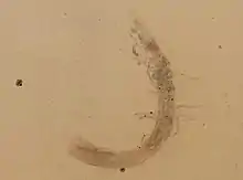 Number of segments 37; elytra 15 pairs. No distinct pigmentation pattern. Prostomium anterior margin comprising two rounded lobes. Lateral antennae inserted ventrally (beneath prostomium and median antenna). Elytra marginal fringe of papillae present. Notochaetae distinctly thicker than neurochaetae. Bidentate neurochaetae absent.[4]