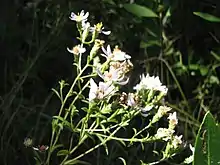 The first name applied to the slender aster was Aster gracilis, which was given by Thomas Nuttall in 1818.[5] Asa Gray later decided that it was better treated as a variety of Aster surculosus.[6] When Guy Nesom[7] decided to transfer many of the North American plants within the genus Aster to Eurybia, the plant needed to receive a new name as a Eurybia gracilis had already been used for an Australian species named by George Bentham in 1837, and now called Camptacra gracilis.[1][4]