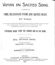 Having observed at an early age that many of the choicest musical productions were the work of women, she decided to make a collection of the sacred compositions of women, and the result was her compilation, Woman in Sacred Song (Boston, 1885). The second edition, published in 1887, contained poetry written by 830 women and 150 musical compositions by 50 different women. The work became internationally known.[5]