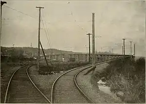 ![]() Junction of the steam and electric lines and trestle over the Northern & Pacific tracks | |