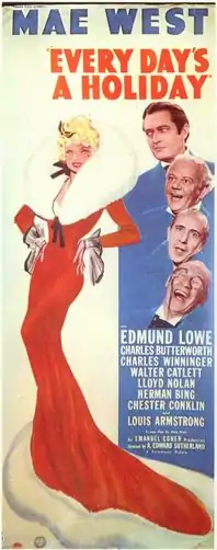 Every Day's a Holiday (1937) is a comedy film starring and co-written by Mae West, directed by A. Edward Sutherland, and released by Paramount Pictures. The film, released on December 18, 1937, also starred Edmund Lowe, Charles Winninger, and Charles Butterworth. This was West's last film under her Paramount contract, after which she went on to make My Little Chickadee (1940) for Universal Pictures and The Heat's On (1943) for Columbia Pictures.