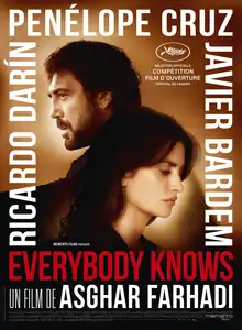 Everybody Knows (Spanish: Todos lo saben, lit. 'Everyone Knows It') is a 2018 Spanish-language mystery/crime drama film written and directed by Iranian filmmaker Asghar Farhadi, and starring Javier Bardem and Penélope Cruz.[5][6] The film was selected to open the 2018 Cannes Film Festival in competition[7] and was released in Spain on 14 September 2018.[8] It was released in the United States on 8 February 2019.[9]