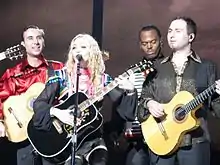Recording sessions began in September 1995, and took place at the CTS Studios in London, with Madonna and co-actors Antonio Banderas and Jonathan Pryce.[9] Engineer David Reitzas performed the mixing of the track at Larrabee North Studios, utilizing their Solid State Logic 9000 J series consoles for the mix.[10] For the first day's sessions, music supervisor David Caddick suggested to record "Don't Cry for Me Argentina" with the 84 piece orchestra backing Madonna's vocals. However, Lloyd Webber was critical of the recording arrangements done in the studio.[9] The cast was also nervous. Flick noted that Banderas found the experience "scary" while Madonna was "petrified" when it came to recording the songs. "I had to sing 'Don't Cry For Me Argentina' in front of Andrew Lloyd Webber ... I was a complete mess and was sobbing afterwards. I thought I had done a terrible job", the singer recalled.[6][11] Conductor John Mauceri remembered another challenge the production faced was adapting the stage numbers into a feature film; "On film, it's different than being on stage because the person on the screen in front of you is never farther than someone on the pillow in bed next to you".[3] Parker declared the first day of recording as "Black Monday", since it was "filled with trepidation and nerves ... All of us came from very different worlds—from popular music, from movies, and from musical theater—and so we were very apprehensive".[6]