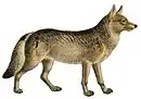 Kurtén was uncertain if C. priscolatrans derived from C. lepophagus and C. arnensis,[34] but believed that C. priscolatrans was a population of large coyotes that were ancestral to Rancholabrean and recent C. latrans. He noted that C. arnensis of Europe showed striking similarities to C. priscolatrans, and they could represent what once was a holarctic population of coyotes.[33]: p27 Nowak disagreed, and believed that C. priscolatrans was a counterpart to the European C. etruscus.[23] Kurtén later proposed that both C. priscolatrans and C. etruscus were part of a group which led to C. lupus but was not sure if they evolved separately from C. lepophagus or a possible common ancestor that was derived from C. lepophagus.[34]