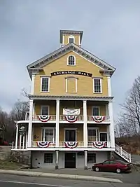 The Exchange Hall is a historic Italianate style hall on Quimby Square, at the intersection of Main and School Streets in the village of South Acton, in Acton, Massachusetts. The 3+1⁄2-story wood-frame building was built in 1860 by James Tuttle, who ran a dry goods business. The third floor of the building was an open space used for civic, social, and religious functions. During the 20th century the building housed the South Acton branch of the local public library.[2]