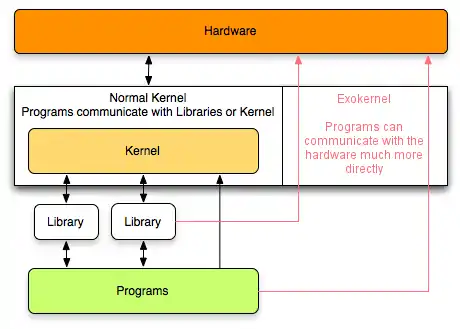 Traditionally kernel designers have sought to make individual hardware resources invisible to application programs by requiring the programs to interact with the hardware via some abstraction model. These models include file systems for disk storage, virtual address spaces for memory, schedulers for task management, and sockets for network communication. These abstractions of the hardware make it easier to write programs in general, but limit performance and stifle experimentation in new abstractions. A security-oriented application might need a file system that does not leave old data on the disk, while a reliability-oriented application might need a file system that keeps such data for failure recovery.