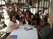 On February 3, 2015, achievements were announced in lieu of stretch goals because the game designers did not want to delay production or distribution of the game to backers. As of February 16, 2015, 30 achievements had been unlocked and the second stretch goal (Unlock 20 Achievements) and third stretch goal (Unlock 30 Achievements) were completed. With the first stretch goal accomplished, the company expanded the NSFW deck to a full stand-alone game.[12] The second stretch goal gave an upgraded storage box which holds two full decks of cards to all backers of the campaign,[13] and the third and final stretch goal includes a Kickstarter-exclusive surprise in the box.[14]