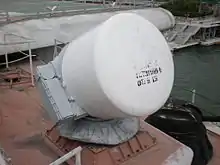 With Raytheon the U.S. Air Force has developed a nonlethal antipersonnel weapon system called Active Denial System (ADS) which emits a beam of millimeter radio waves with a wavelength of 3 mm (frequency of 95 GHz).[13] The weapon causes a person in the beam to feel an intense burning pain, as if their skin is going to catch fire. The military version had an output power of 100 kilowatts (kW),[14] and a smaller law enforcement version, called Silent Guardian that was developed by Raytheon later, had an output power of 30 kW.[15]