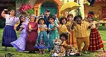 Encanto was the "hardest film" to date for heads of animation Renato dos Anjos and Kira Lehtomaki because they were asked to fully develop a dozen characters, as opposed to other animated films which primarily feature two or three characters out of a large cast.[34] Accordingly, the characters required a degree of complexity that Disney Animation had previously never achieved.[35] Journalist Edna Liliana Valencia Murillo was the Afro-Caribbean consultant and contributed greatly towards Félix, Dolores, and Antonio's designs.[36] According to Howard, certain characters' Afro–Latin hairstyles were essential.[37] Neysa and Lorelay Bové, the costume design lead and associate production designer respectively, hoped to represent the film's various communities well. Neysa requested Colombian consultants, which included an anthropologist and botanist.[36]