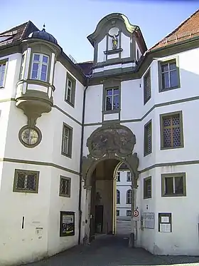 The north wing was used as the town hall. In the south wing the Füssen Town Museum is now located, with displays on the history of the abbey and of the town, particularly of the traditional manufacture of lutes and violins in Füssen. It is also possible to view the Baroque reception rooms of the abbey in the museum.