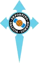 The club was established in 1968 under the name Centro Gallego and joined the West Fulham League.[2][3] A split during the 1971–72 season saw another club formed under the name FC Deportivo Galicia, with the two clubs merging under the latter name in 1975, at which point they were playing in the Harlesden Sunday League.[3]