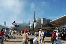 Over the next three plus years, the original Wright R-3350-57AM engines were exchanged for new engines built using parts from later model engines that powered the Douglas A-1 Skyraider and Fairchild C-119 Flying Boxcar during the Vietnam War, a custom built combination of the Wright R-3350-95W and Wright R-3350-26WD engines.[13]