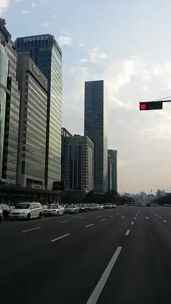 The FKI Tower also known by its full name Federation of Korean Industries Head Office Building is a skyscraper on Yeouido island in Seoul, South Korea. It was designed by the American architectural firm Adrian Smith + Gordon Gill Architecture. Construction started in 2010 and was completed in 2014. At 245 m (804 ft) high, it is amongst the tallest buildings in South Korea and the 5th tallest building in Seoul. The building was awarded the 2015 Building of the Year award by American-architects.com[2]