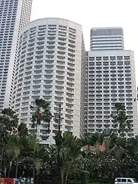 Fairmont Singapore (Chinese: 费尔蒙特酒店), formerly Raffles The Plaza (Chinese: 莱佛士大厦) is the sister hotel of Swissôtel The Stamford located within the Raffles City complex in Singapore. It has a total of 778 rooms and suites housed within two 26-storey towers. Opened as The Westin Plaza in 1986, the hotel was refurbished together with Swissôtel The Stamford, formerly known as the Westin Stamford, and was renamed Raffles The Plaza on 1 January 2002 and Fairmont Singapore on 12 December 2007 with a change in branding. In September 2019, Fairmont Singapore completed its renovation[1] of the South Tower.