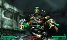 The Vault-Tec Assisted Targeting System (V.A.T.S.) is a new element in the Fallout series and plays an important part in combat within Fallout 3. The system was introduced by Bethesda's developers, who described it as a hybrid between timeturn-based and real-time combat, so much in that while using V.A.T.S., real-time combat is paused and action is played out from varying camera angles in a computer graphics version of bullet time. Using the system costs action points (AP), the amount of which depends on the weapon being used and thus limiting the actions of the player's combat during a turn. Through the system, the player can switch between multiple targets (if there is more than one around at any time), and also target specific areas of them to inflict damage; a player could either target the head for a quick kill, go for the legs to slow an enemy's movements, or shoot at their weapons to disarm them, and for some enemies, they can put them into a berserker rage by hitting specific parts. The chance of striking a different area, displayed as a percentage ratio, is dependent on the weapon being used, and the distance between the character and the target; a character who is a higher level when using V.A.T.S is also more likely to hit an enemy with the system than a lower level character. The use of V.A.T.S. does confer a negative effect, in that it eliminates most of the first-person shooter elements of the game; aiming is taken over by the computer, and the player is unable to move as a means of avoiding attacks. Furthermore, ranged weapons are capable of hitting limbs, while melee weapons focus on the target in whole when using V.A.T.S.[12]