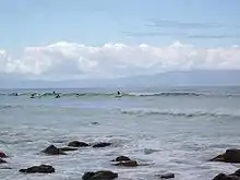 Outside the bay, but influencing the wave patterns in it, is Rocky Bank, an extensive area of relatively flat sandstone reef between 20 and 30 m depth.[2][1]