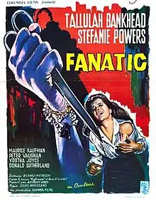 Fanatic (released as Die! Die! My Darling! in the United States) is a 1965 British horror thriller film directed by Silvio Narizzano for Hammer Films. It stars Tallulah Bankhead, Stefanie Powers, Peter Vaughan, Yootha Joyce, Maurice Kaufmann and Donald Sutherland.