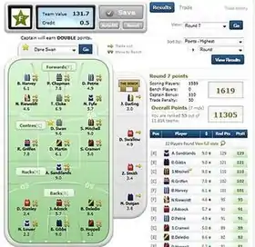 Fantasy football is a fantasy sport version of Australian rules football in which competitors score points based on the performance of players in the Australian Football League.[1][2][3]