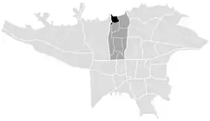 Location of Farahzad (black) in Municipal District No. 2 (dark grey) of Tehran metropolis