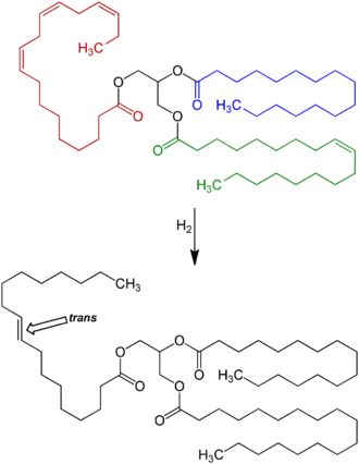 208. Eller FJ, List GR, Teel JA, Steidley KR, Adlof RO (July 2005). "Preparation of spread oils meeting U.S. Food and Drug Administration Labeling requirements for trans fatty acids via pressure-controlled hydrogenation". Journal of Agricultural and Food Chemistry. 53 (15): 5982–4. doi:10.1021/jf047849+. PMID 16028984.