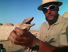 "Scientist with Monitor Lizard"