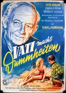 Father Is Being Stupid (German: Vati macht Dummheiten) is a 1953 West German comedy film directed by Johannes Häussler and starring Otto Gebühr, Camilla Horn and Herbert Hübner.[1]
