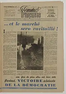 Femmes françaises (French: French women) was a French-language feminist and communist women's magazine which was launched in 1944.[1] The publisher of the magazine was France d'abord.[2] The magazine was published on a weekly basis.[1] In 1948 the magazine sold 5,600 copies.[1] It ceased publication in 1957.[1] Its successor is another feminist magazine, Clara.[3]
