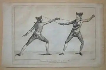 The mechanics of modern fencing originated in the 18th century in an Italian school of fencing of the Renaissance, and under their influence, were improved by the French school of fencing.[10][11] The Spanish school of fencing stagnated and was replaced by the Italian and French schools.