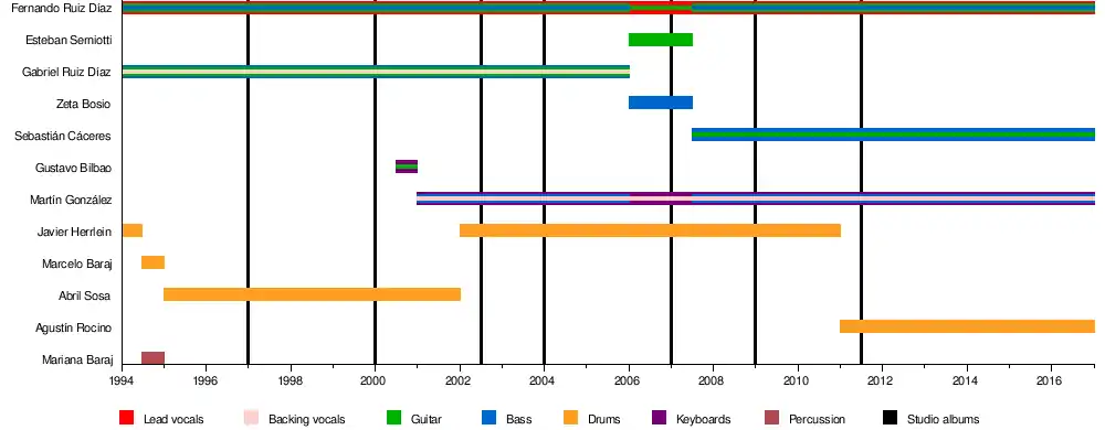 | Past members | Marcelo Baraj Mariana Baraj Miguel Sosa Gabriel Ruiz Díaz † Zeta Bosio Javier Herrlein |