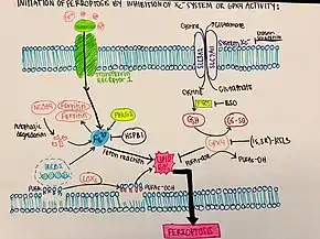 Ferroptosis is a type of programmed cell death dependent on iron and characterized by the accumulation of lipid peroxides, and is genetically and biochemically distinct from other forms of regulated cell death such as apoptosis.[1] Ferroptosis is initiated by the failure of the glutathione-dependent antioxidant defenses, resulting in unchecked lipid peroxidation and eventual cell death.[2] Lipophilic antioxidants[3] and iron chelators[4] can prevent ferroptotic cell death. Although the connection between iron and lipid peroxidation has been appreciated for years,[5] it was not until 2012 that Brent Stockwell and Scott J. Dixon coined the term ferroptosis and described several of its key features.[4]