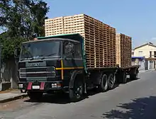 The first generation included two versions: the Fiat 619 N, as a chassis truck, and the Fiat 619 T, as a road tractor. At that time the letters after the number indicated "naphtha" for the N and "tractor and semi-trailer" for the T.[1] Both were equipped with the characteristic Fiat baffo cabin with the characteristic moustache (baffo in Italian) on the front. The Fiat baffo cabin would become the emblem of Fiat VI trucks from 1955 to 1974 and was designed to comply with the new Italian Highway Code of 1952, that imposed new rules on the sizes of Vehicles, in accordance with the Geneva Convention (1949) on international transport.[1] In South America, where it was produced until 1994, the Fiat 619 was nicknamed pico de loro, that is parrot beak, due to the shape of the cabin.[2]